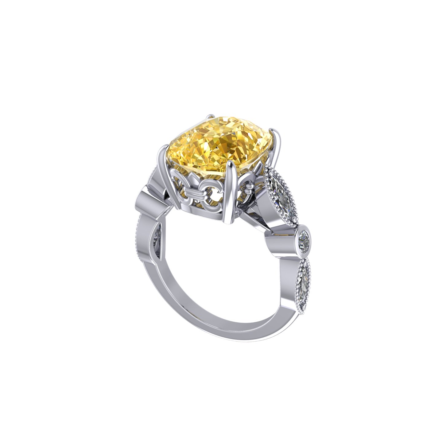 Cushion Cut Yellow Citrine Engagement Ring
