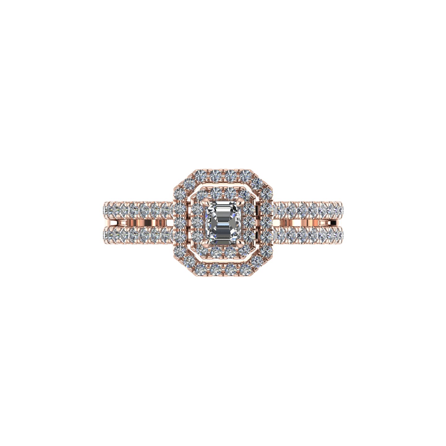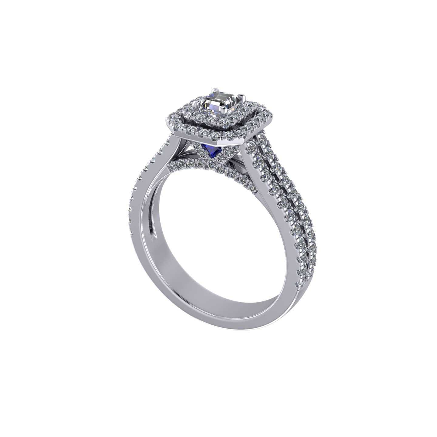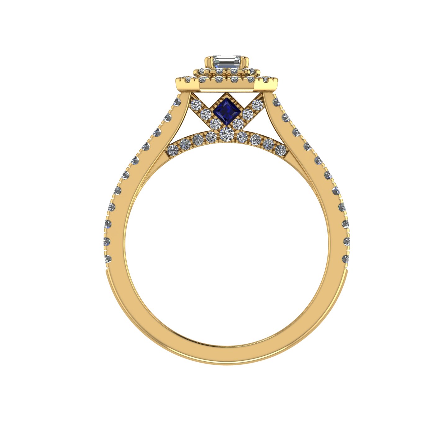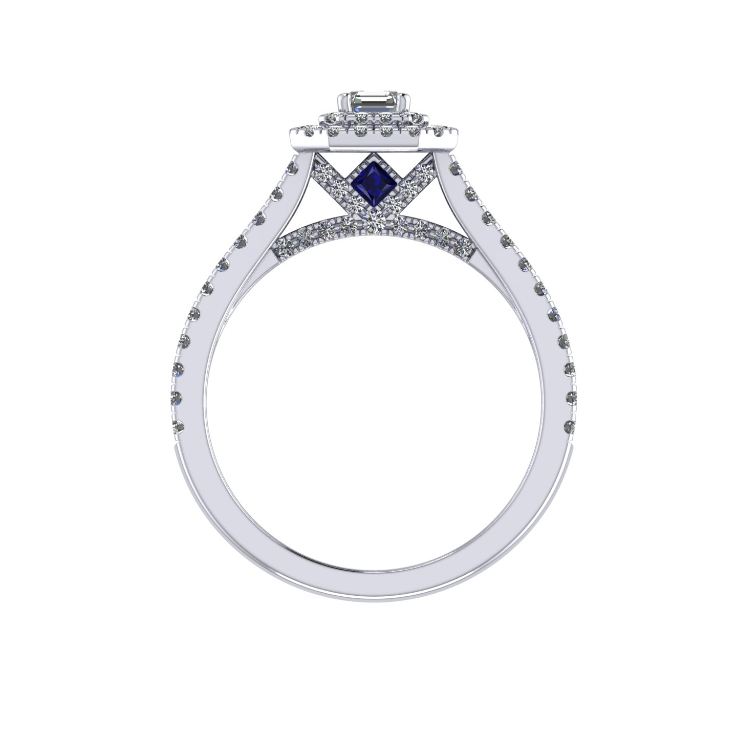 Halo Pave Set Emerald Diamond and Sapphire Split Shank Engagement Ring quantity